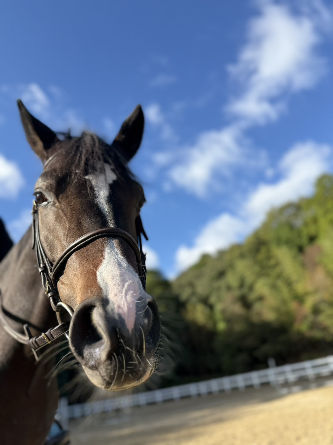 競走馬として長く活躍したペスカ。引退後は、心と体をゆっくり整える時間を過ごし、少しずつ乗馬としてのトレーニングをスタートしました。右手前の硬さやコントロールの難しさなど、課題も多くありましたが、真面目に向き合いながら、ひとつひとつ乗り越えてきました。